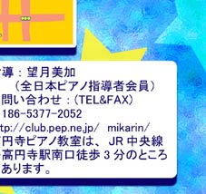 Copyright(C) 1999-2001 ‚‰~Ž›¢–]ŒŽƒsƒAƒm‹³Žº£.All rights reserved